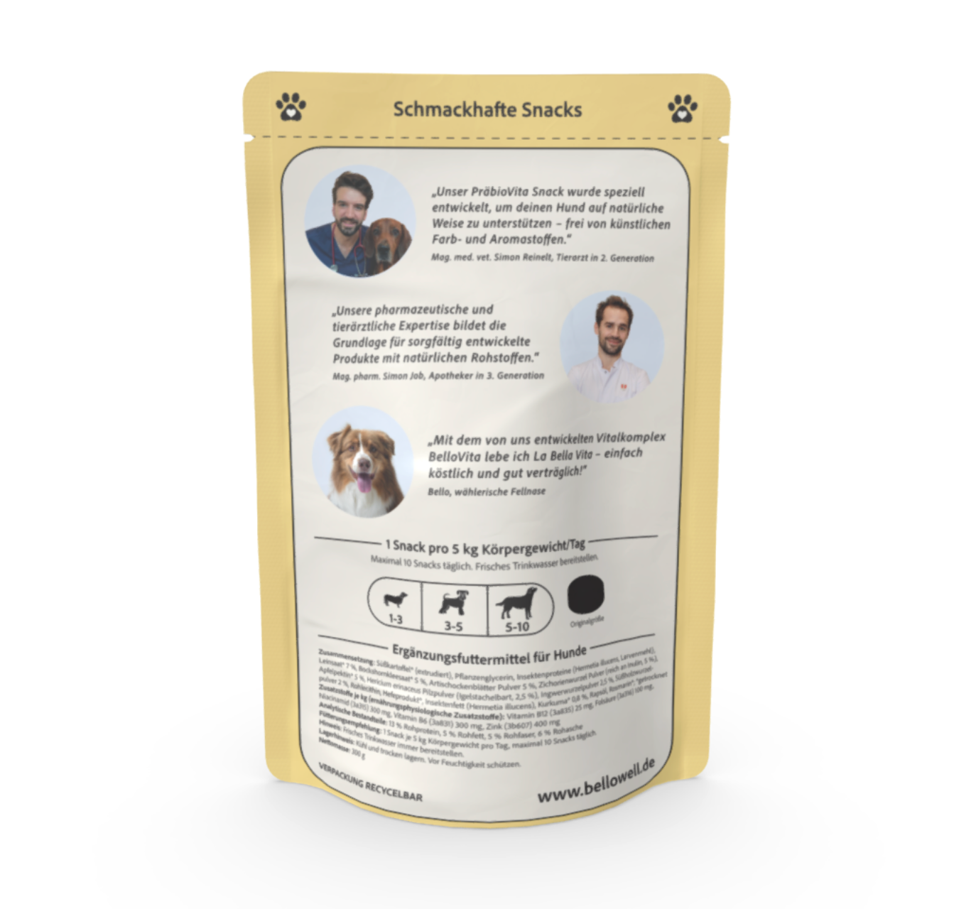 Empfohlene Tagesmenge: 1 Snack pro 5 kg Körpergewicht