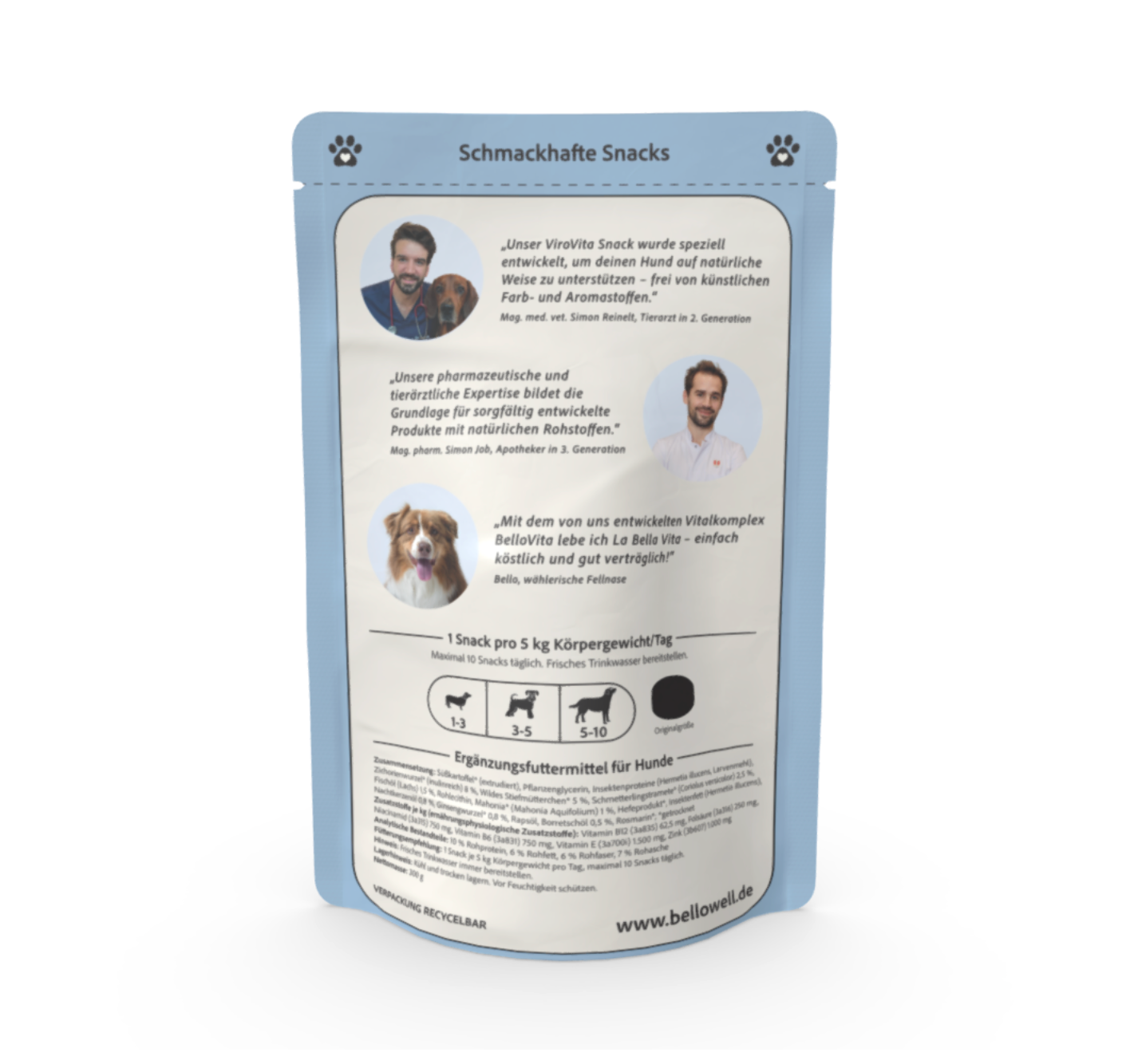 Empfohlene Tagesmenge: 1 Snack pro 5 kg Körpergewicht